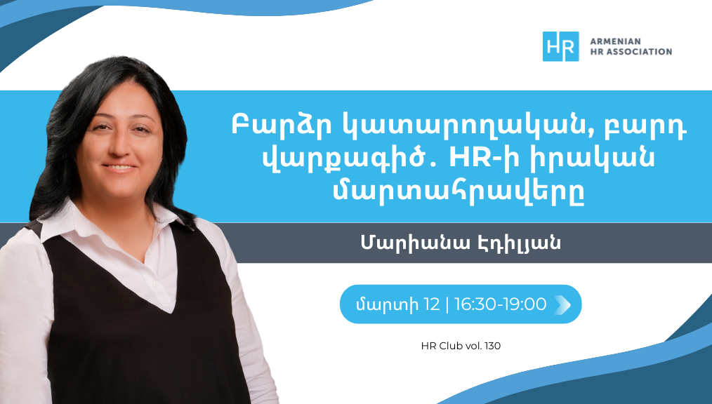 Վարպետաց դասը կանցկացնի Մարիանա Էդիլյանը՝ Հայաստանում տեղեկատվական ու հաղորդակցային տեխնոլոգիաների ոլորտի առաջատար Viva (Վիվա Արմենիա ՓԲԸ) ընկերության մարդկային ռեսուրսների վարչության ղեկավարն, ով ունի մարդկային ռեսուրսների կառավարման ավելի քան 15 տարվա փորձ՝ մանրածախ առևտրի, բանկային և հեռահաղորդակցության ոլորտներում: Մինչ այդ Մարիանան ավելի քան 14 տարի աշխատել է միջազգային կազմակերպությունների հետ՝ համայնքային զարգացման ծրագրերում։